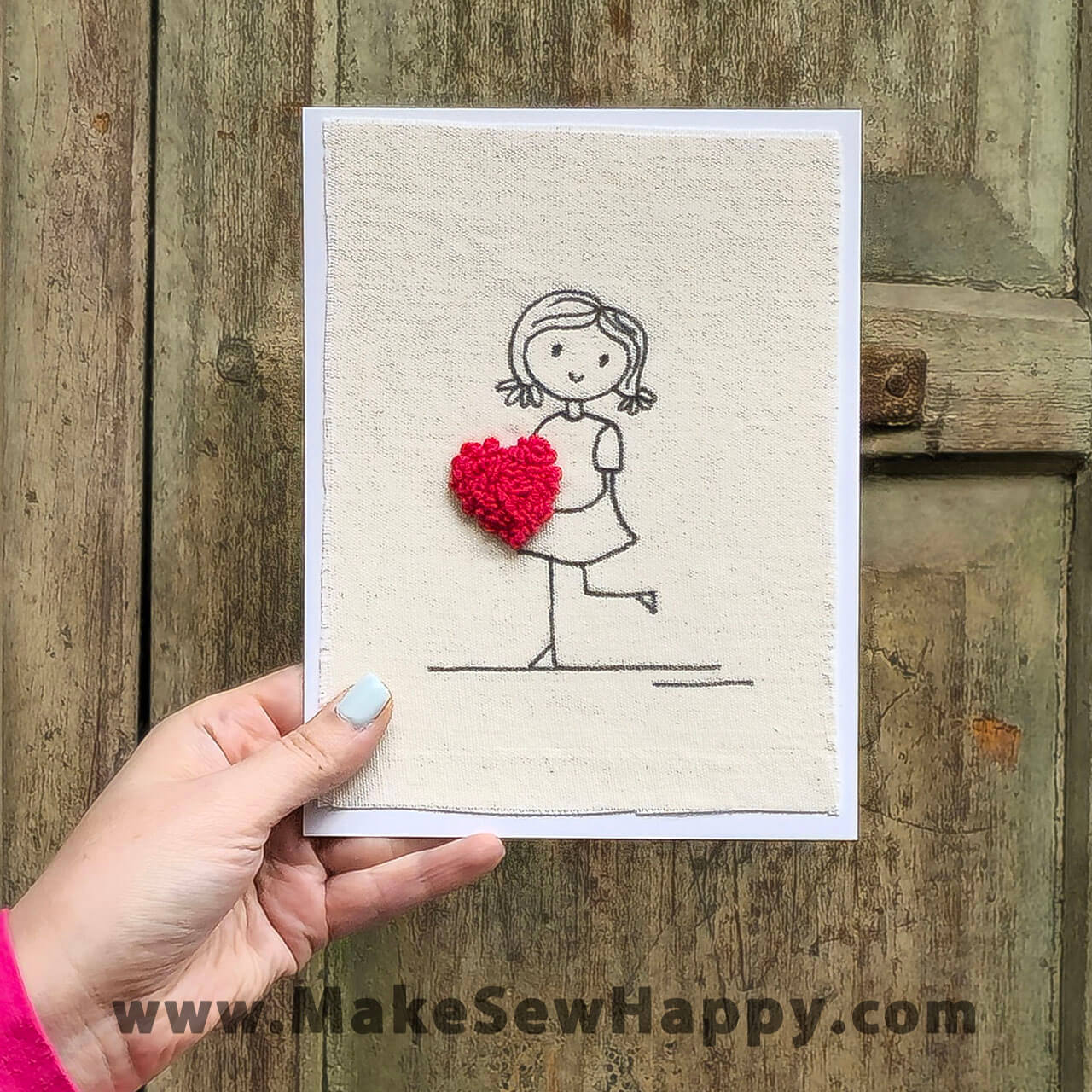 کارت پستال پارچه‌ای طرح دختربچه با قلب قرمز