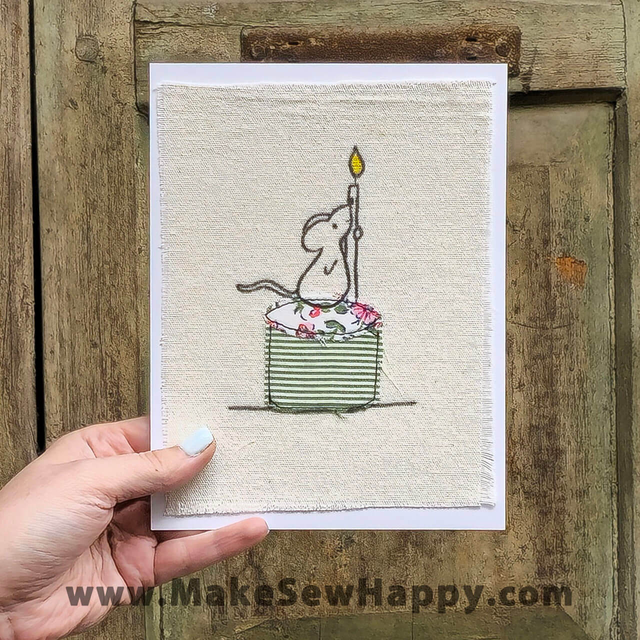 کارت پستال پارچه‌ای طرح کیک تولد و موش
