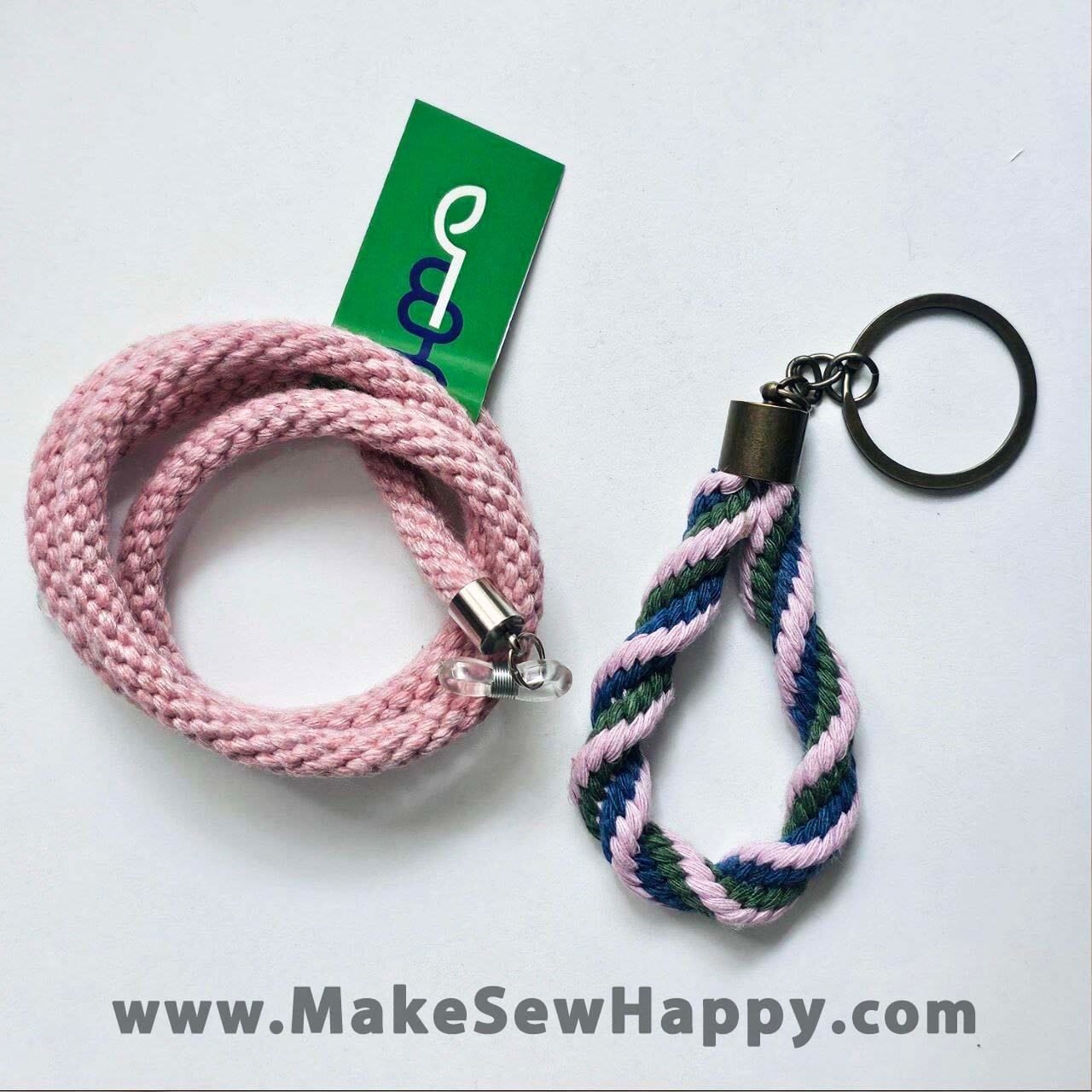 ست کادویی بند عینک و جاسوئیچی بافت رنگ صورتی و سرمه‌ای