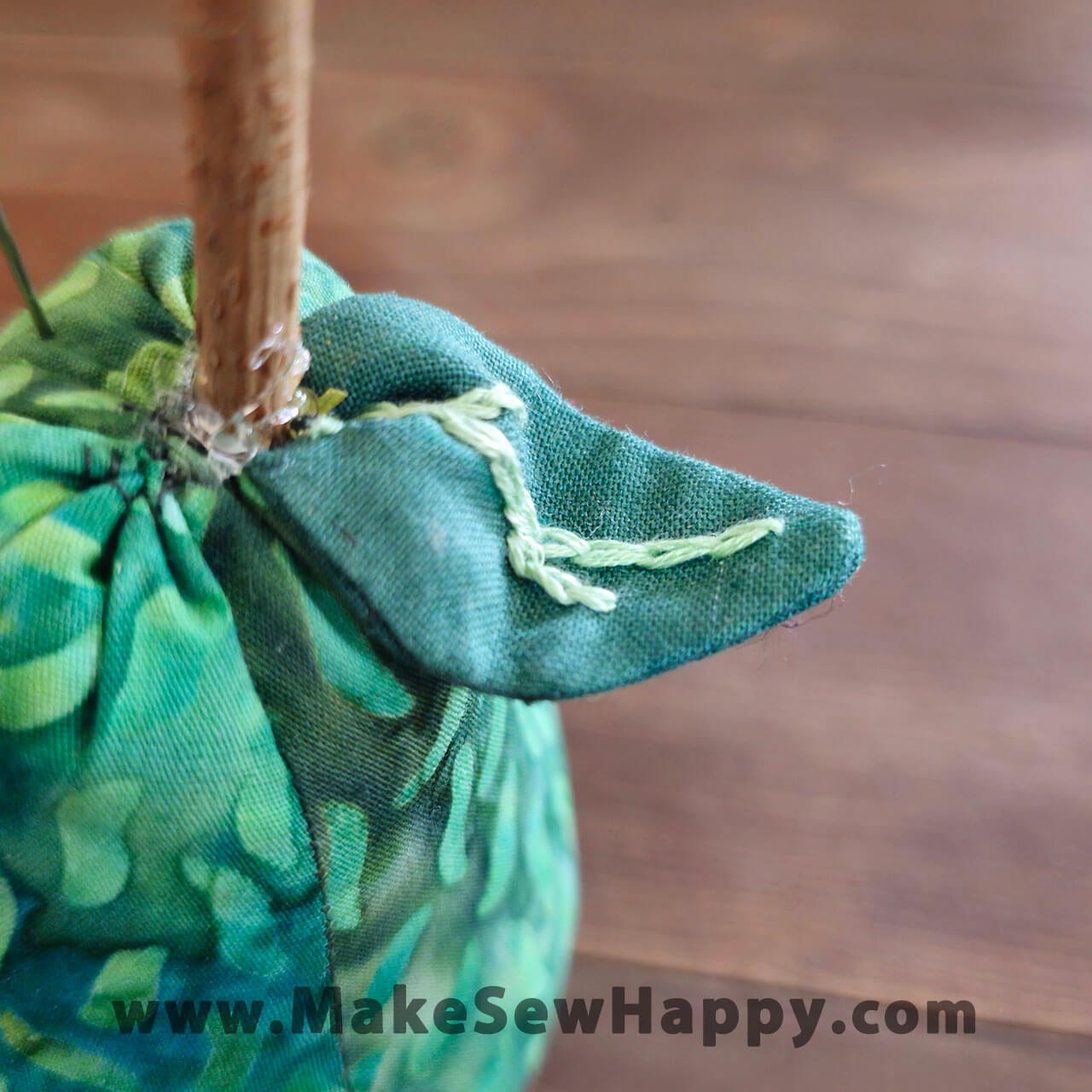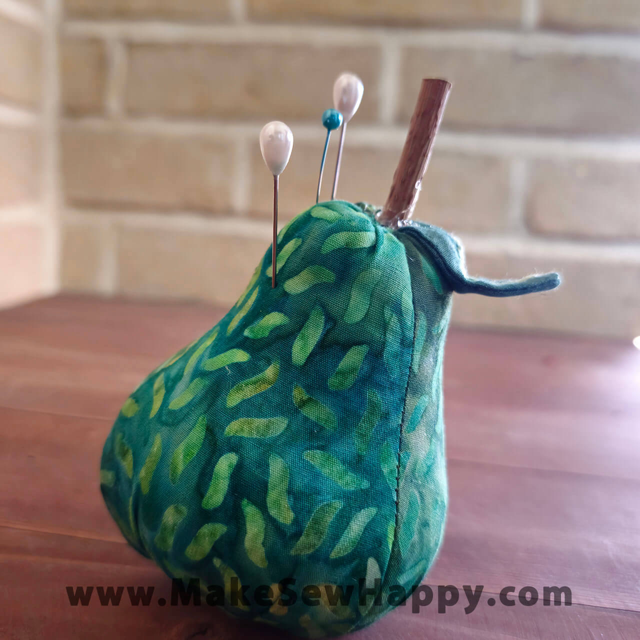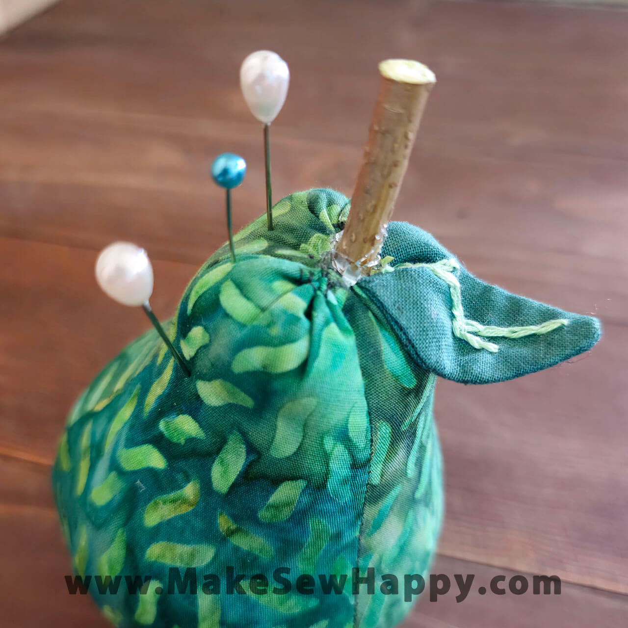 جا سوزنی پارچه‌ای مدل گلابی سبز طرح برگ