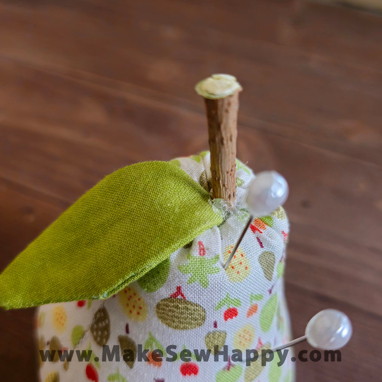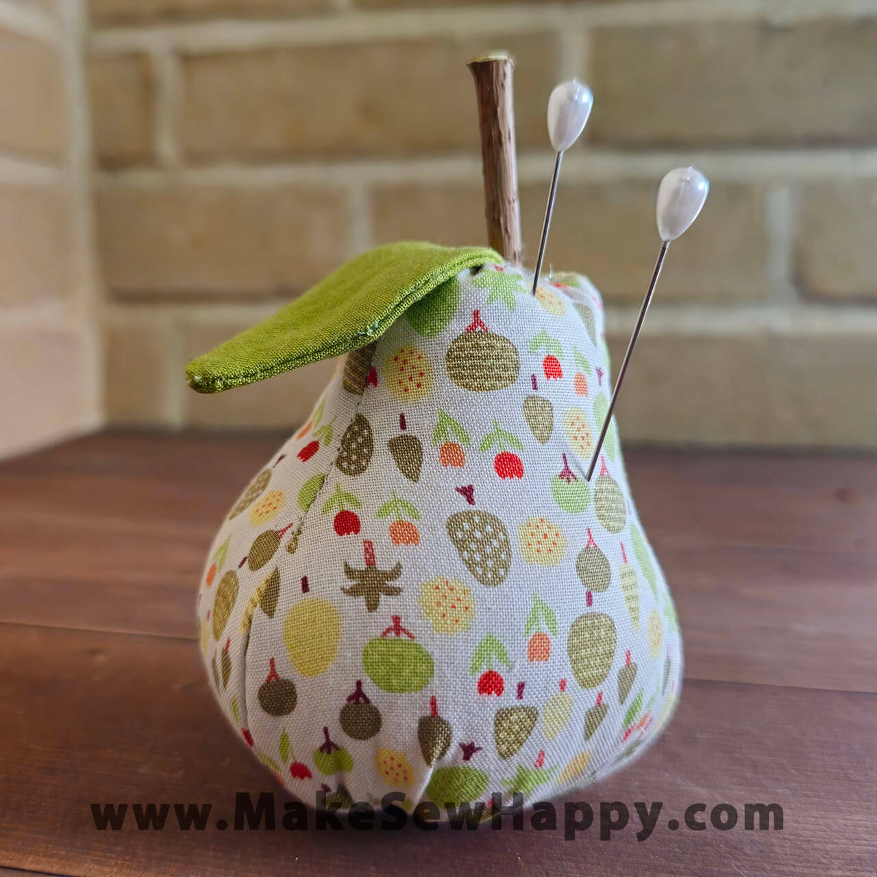 جا سوزنی پارچه‌ای مدل گلابی سفید طرح درخت و گل