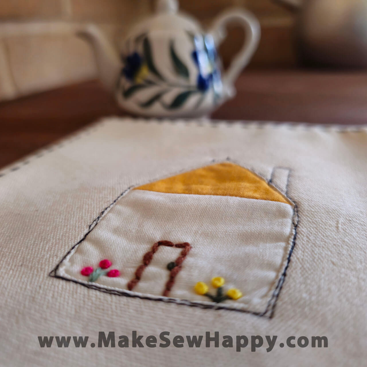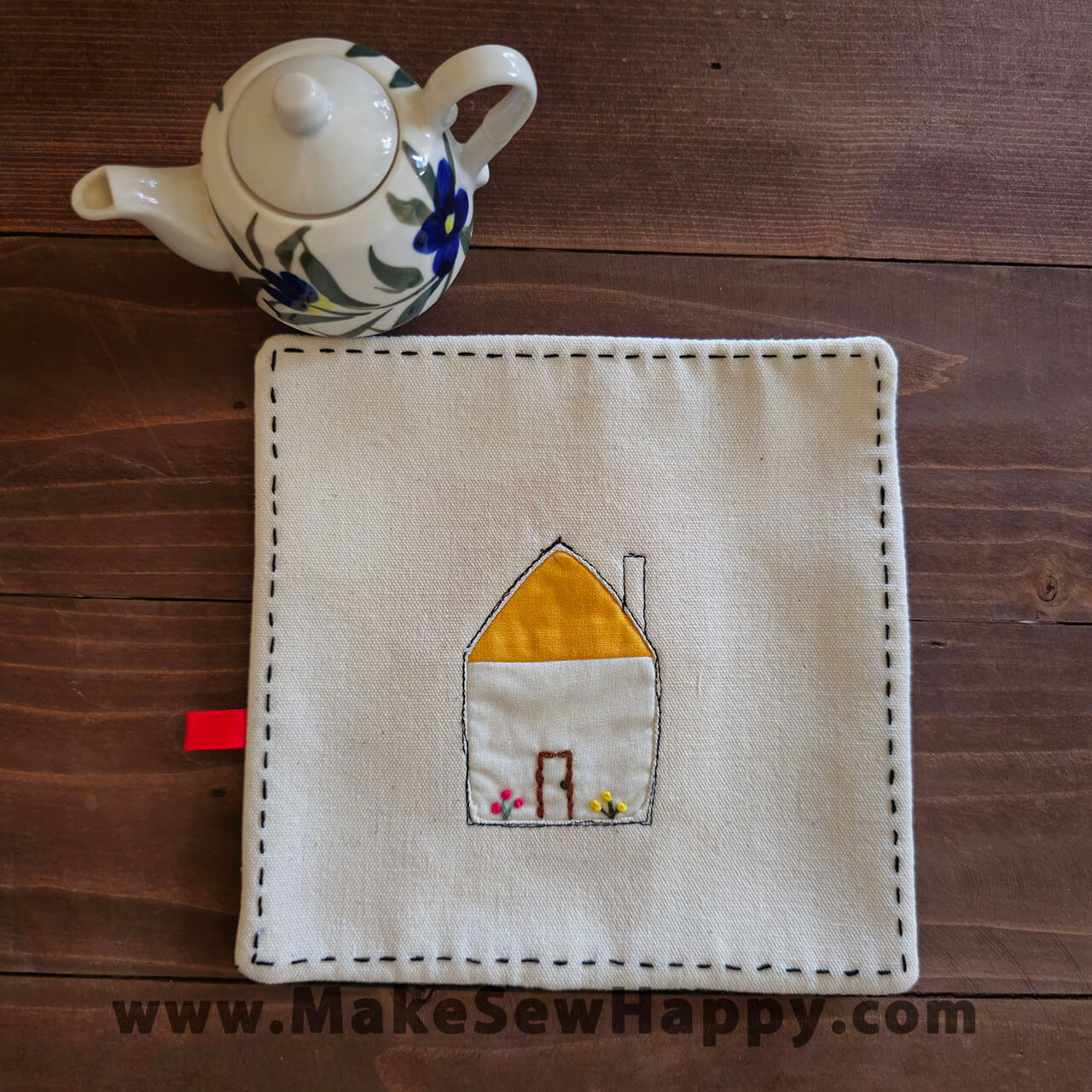 دستگیره آشپزخانه پارچه‌ای مدل مربع طرح خانه رنگ سفید