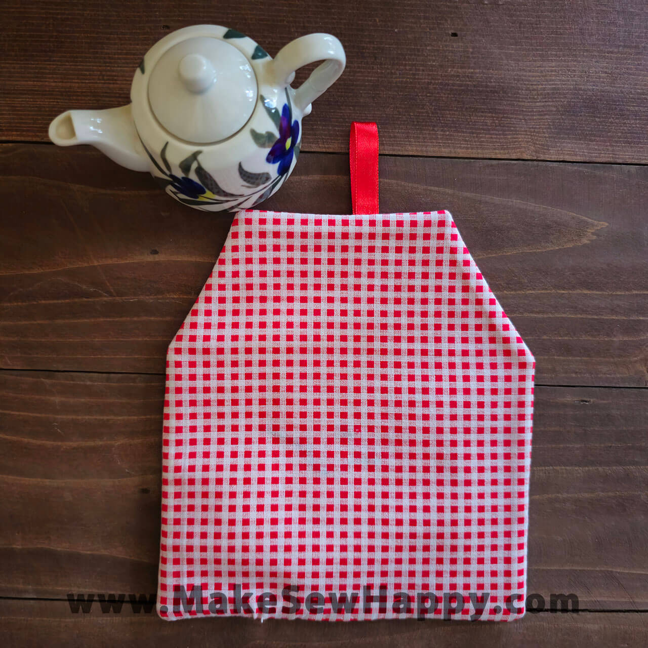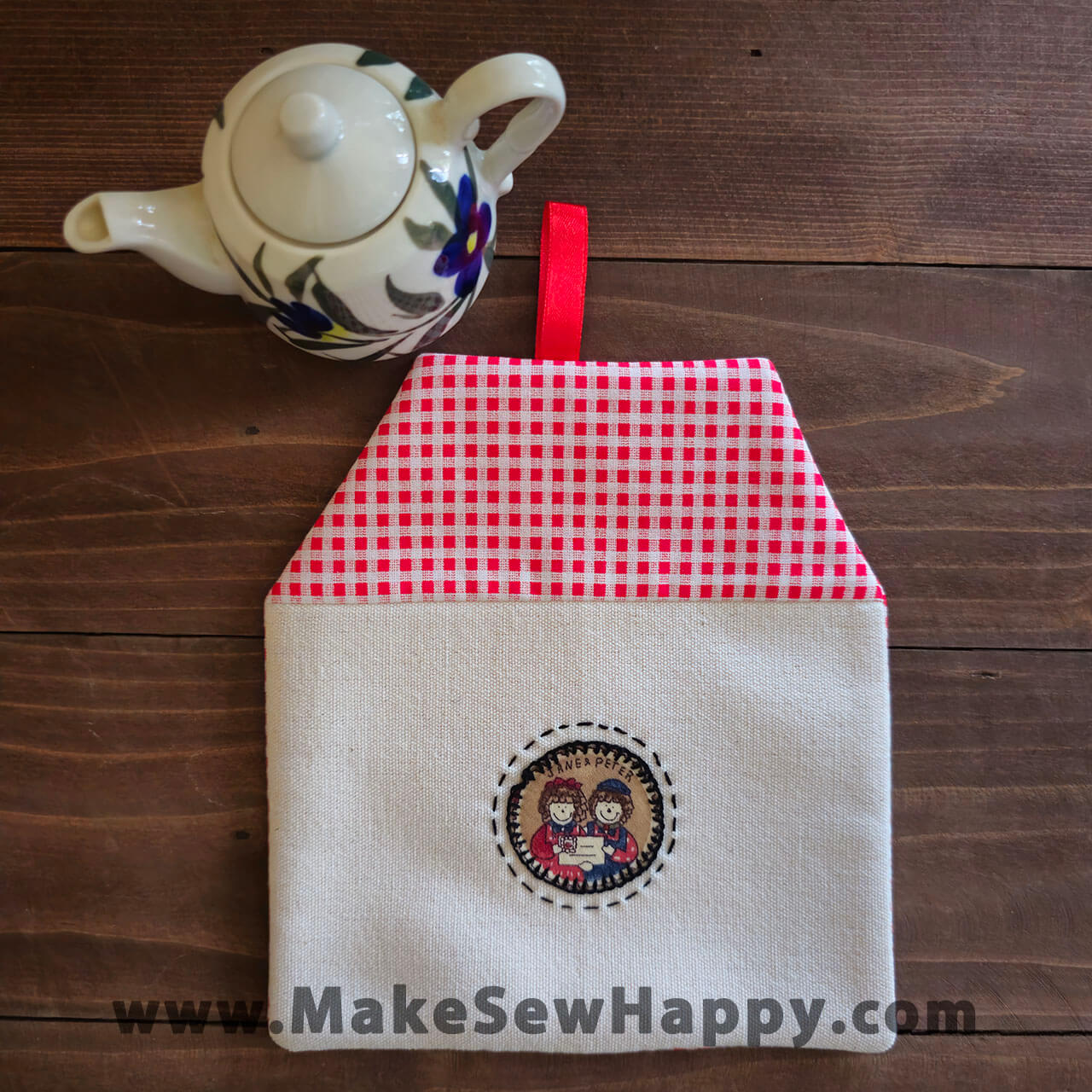 دستگیره آشپزخانه پارچه‌ای مدل خانه طرح دو آدمک رنگ سفید و صورتی