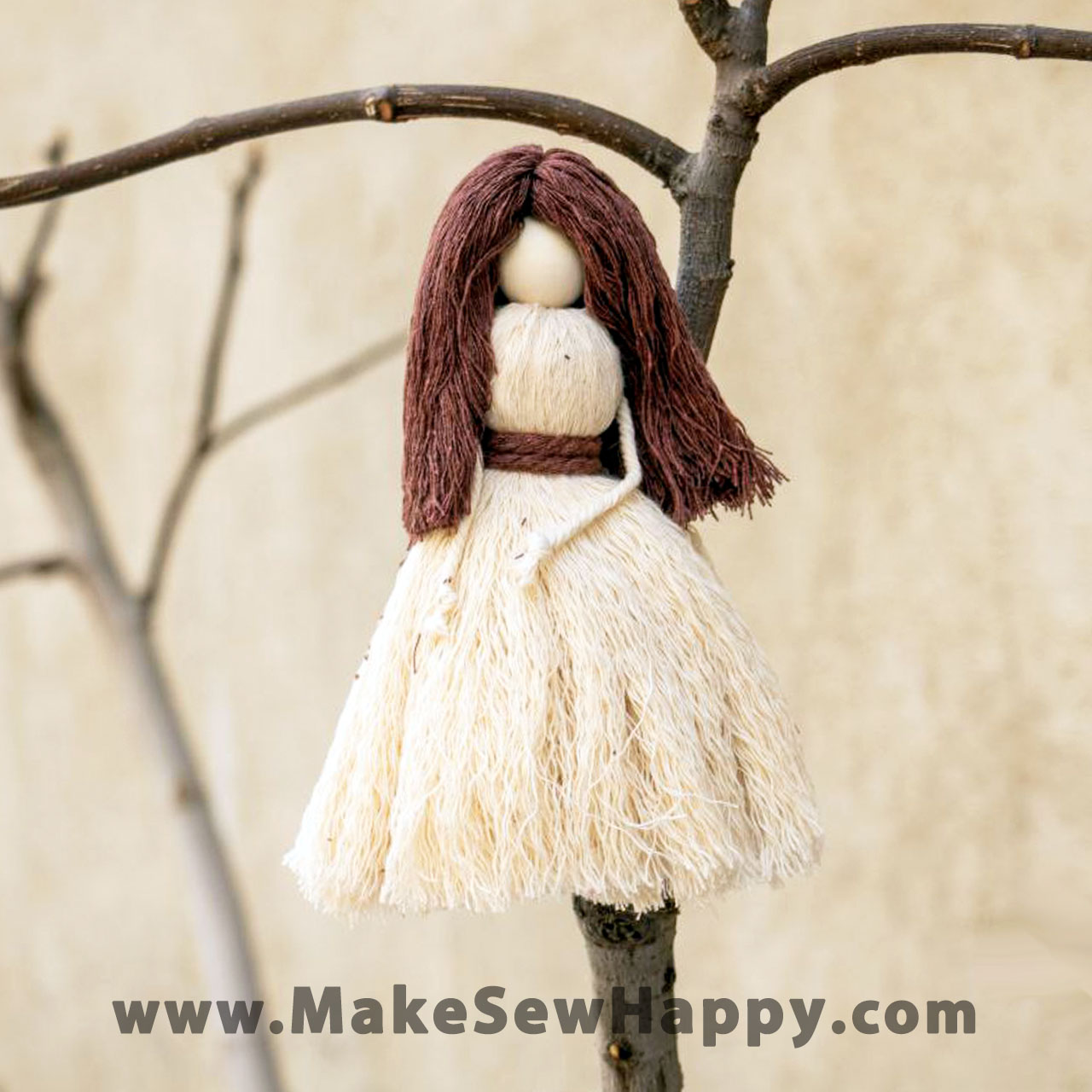 عروسک نخی دست‌ساز رنگ یاسی و قهوه‌ای