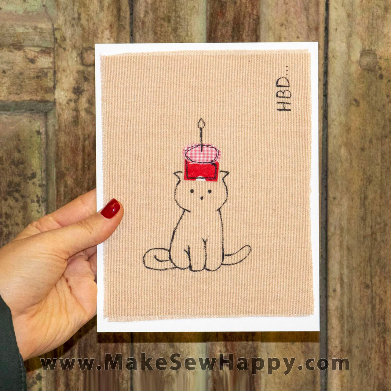 کارت پستال پارچه‌ای تولدت مبارک طرح گربه
