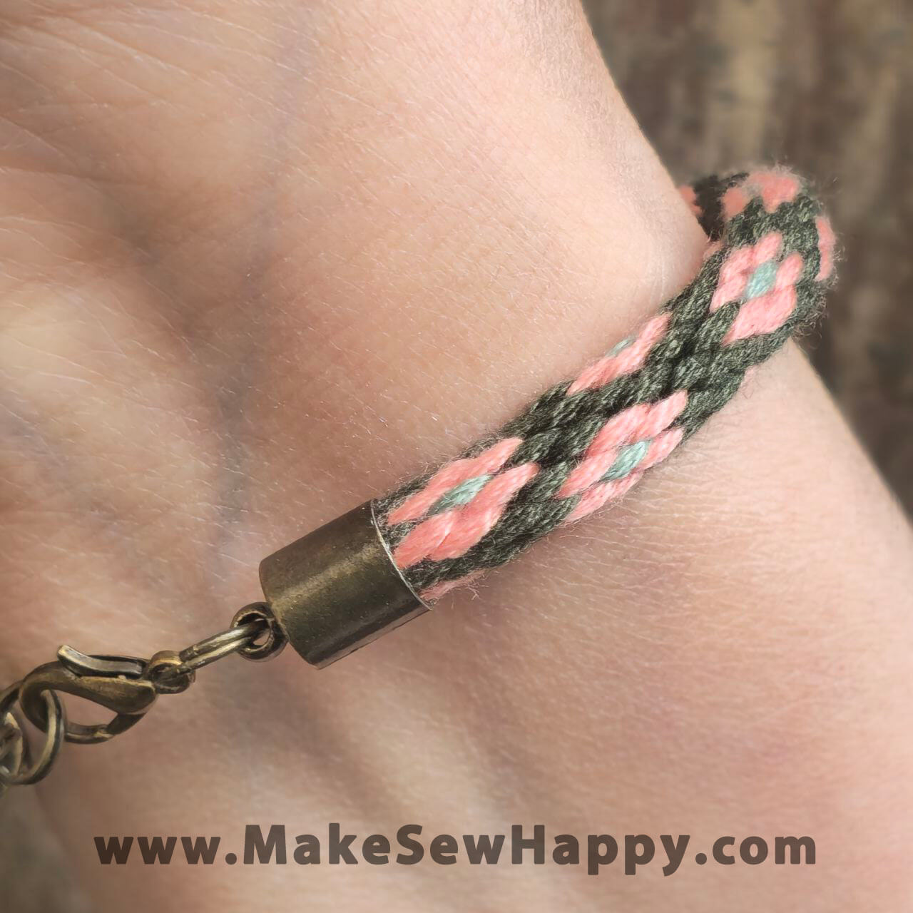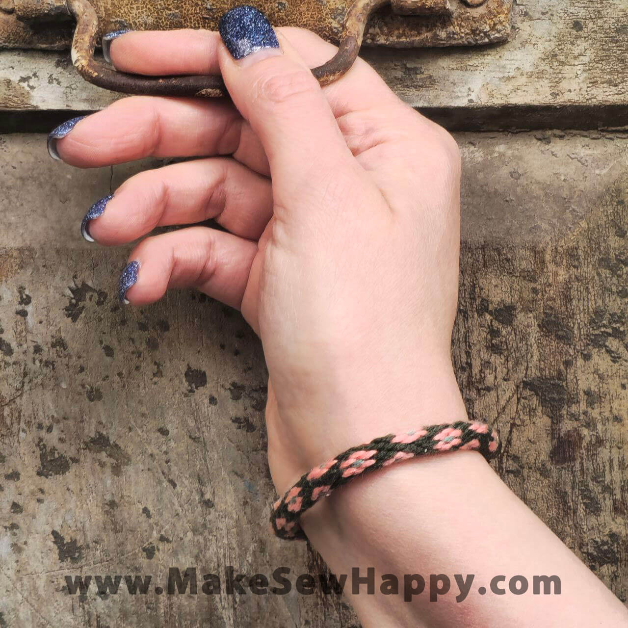 دستبند نخی طرح گل رنگ سبز یشمی و صورتی
