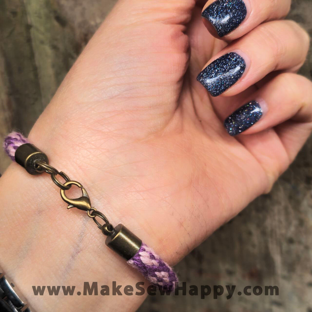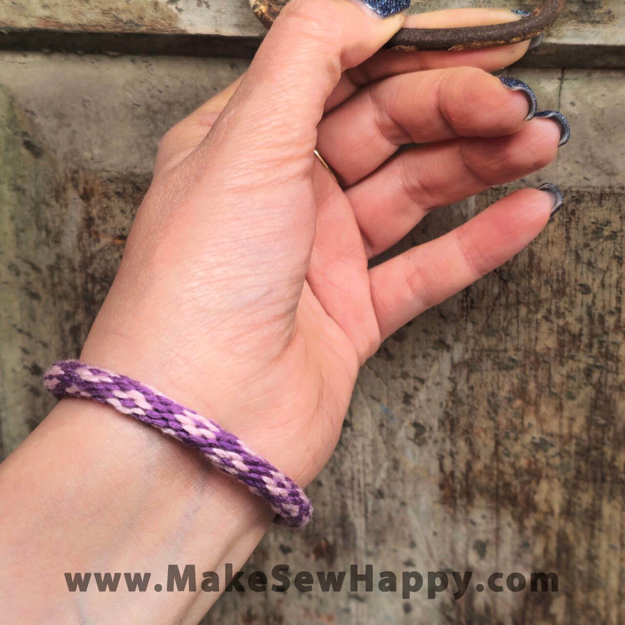 دستبند نخی طرح گل رنگ صورتی و بنفش