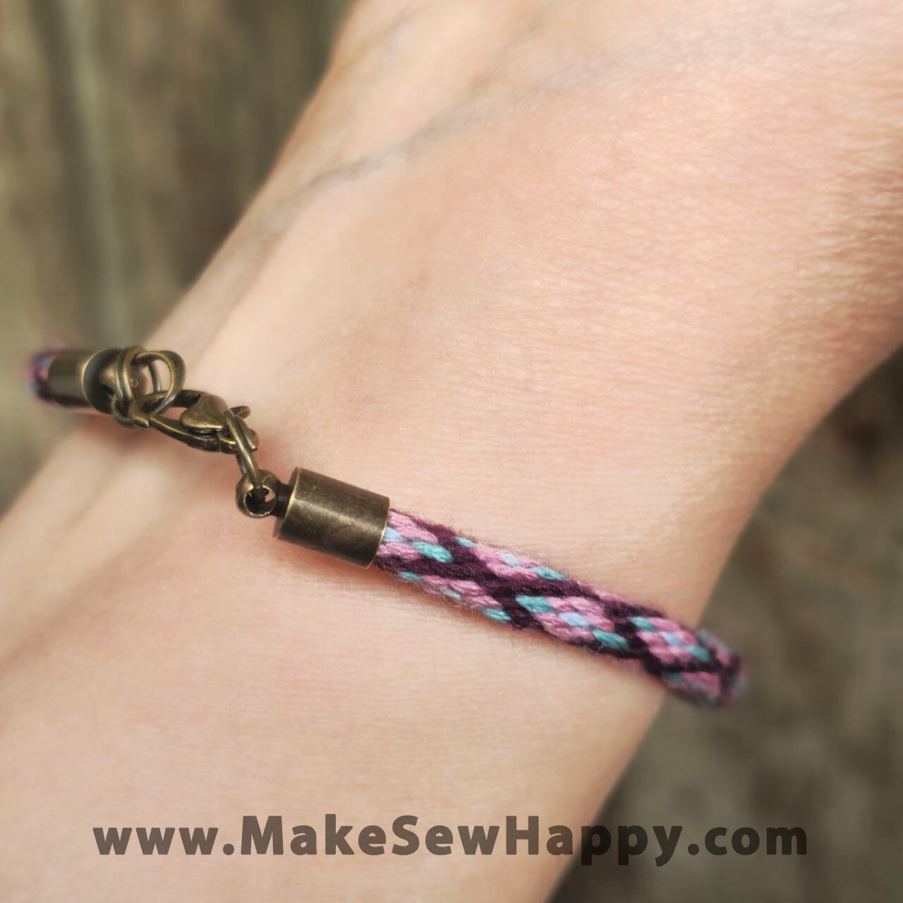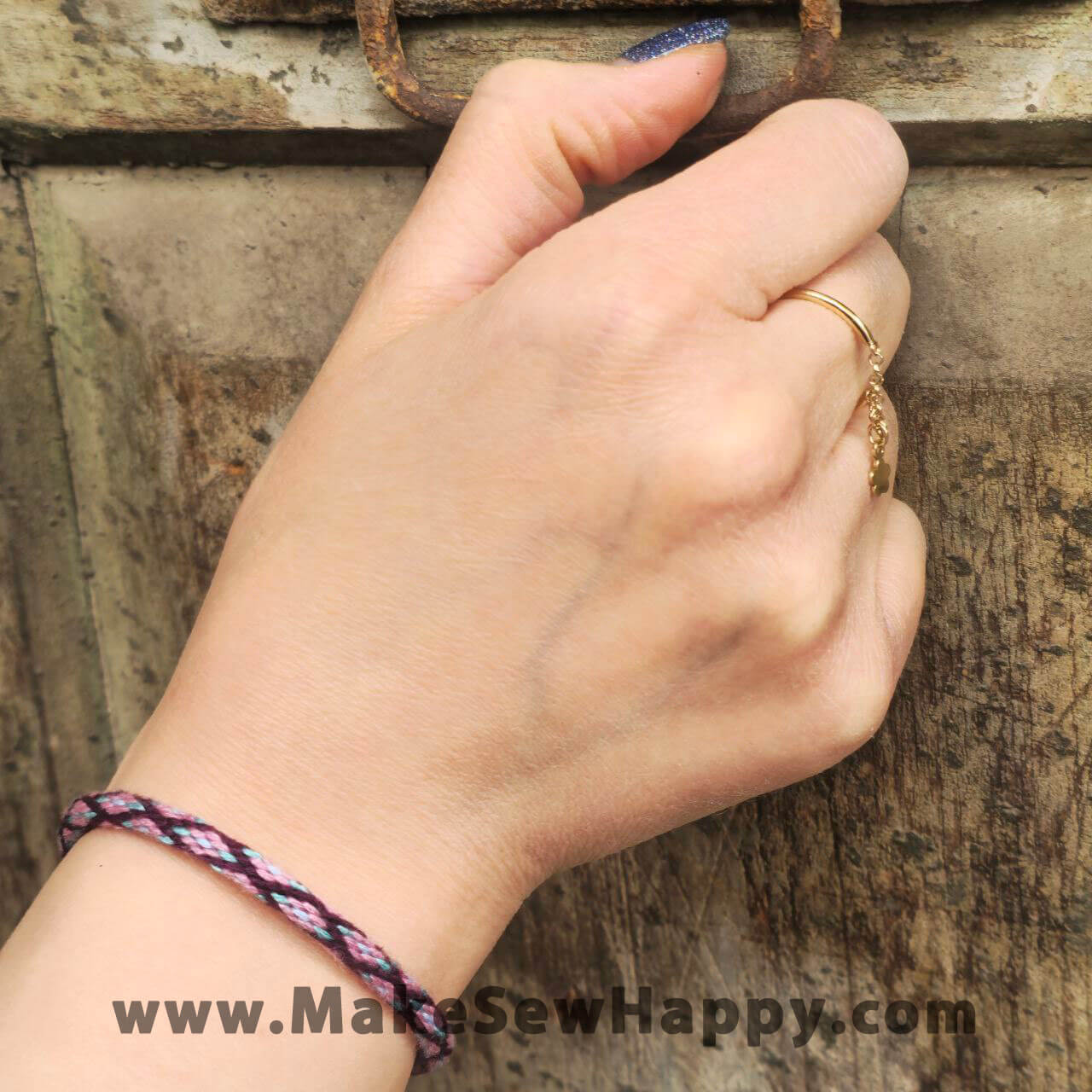 دستبند نخی طرح ضربدر رنگ صورتی و زرشکی و سبز روشن