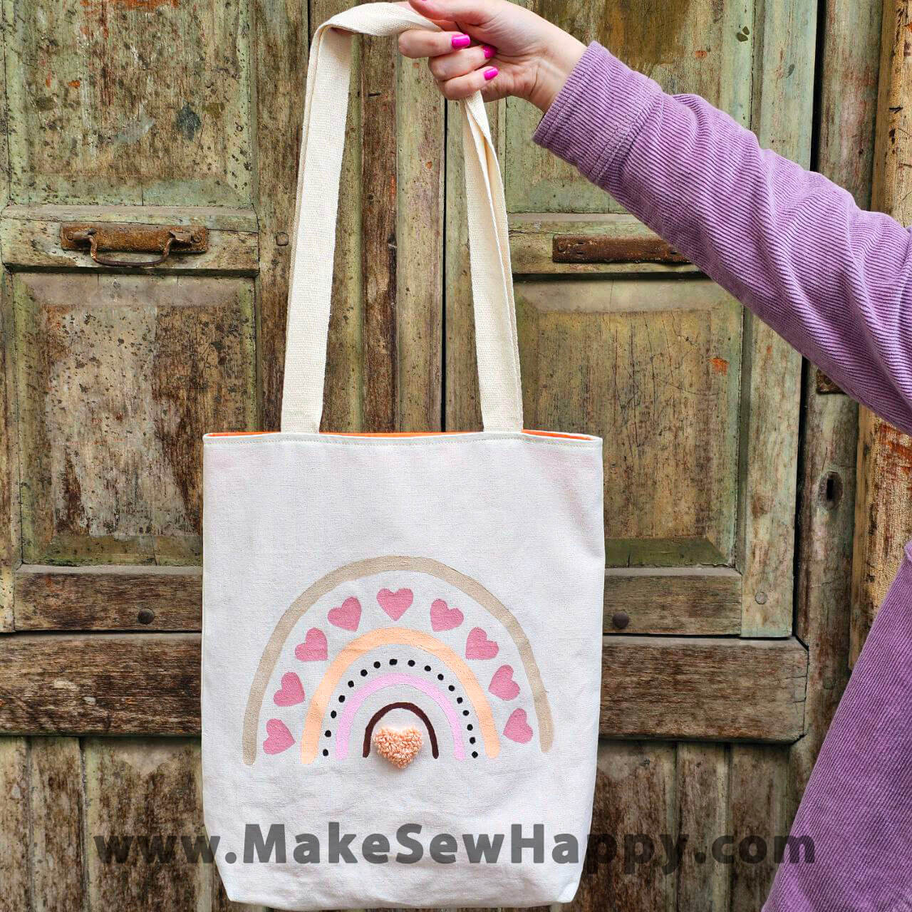 کیف توت بگ طرح رنگین کمان قلبی و قلب صورتی روشن